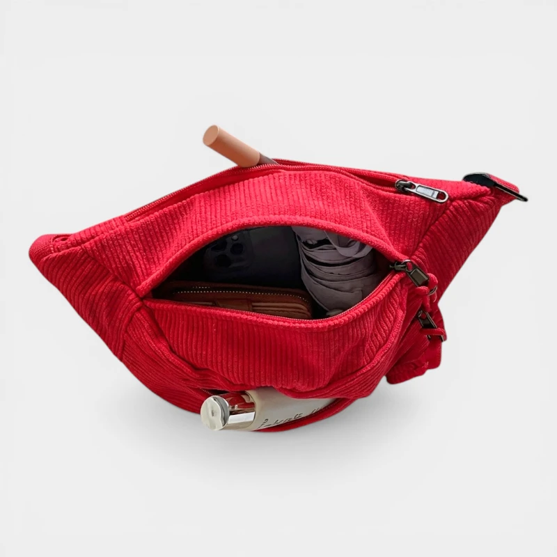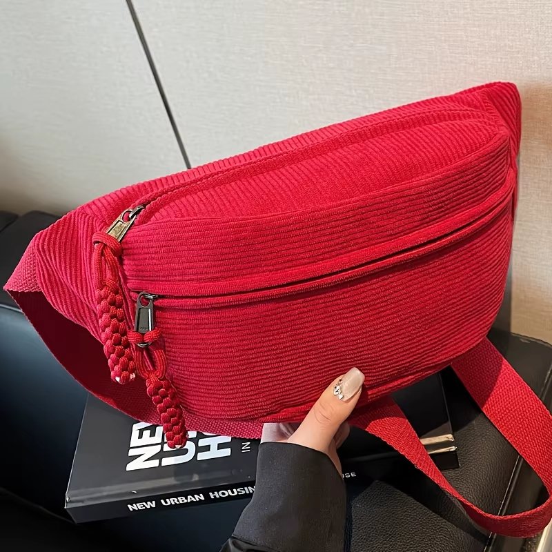 Avec son velours côtelé doux et sa conception ingénieuse, la Banane Velours Vôtelé Rouge Zip Tressé est pensé pour faciliter vos déplacements quotidiens. Vous gardez l’esprit léger, tout en ayant vos affaires en sécurité et accessibles.