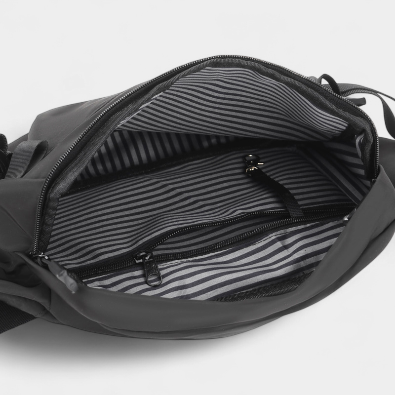 Ce sac banane est doté de plusieurs poches astucieusement réparties pour faciliter l’organisation de vos affaires. Une grande poche principale, avec une poche zippée à l’intérieur, vous offre un espace de rangement sécurisé pour vos objets de valeur. Une poche à l’avant et une poche sécurisée à l’arrière vous permettent d’accéder facilement à vos effets personnels, tout en les gardant à portée de main.