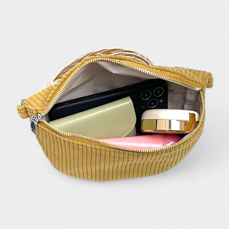 Petit Sac Banane Velours Côtelé Bandoulière Femme