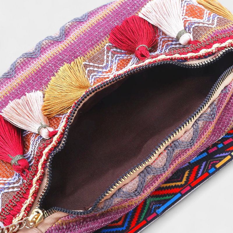 Avec ses motifs inspirés des cultures incas et ses pompons joyeux, ce sac s’affirme comme le compagnon idéal des adeptes d’un style bohème et décontracté. Il se porte aussi bien lors de festivals, d’escapades en ville ou en balade pour affirmer un esprit voyageur et libre.