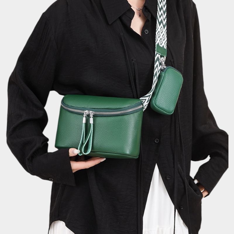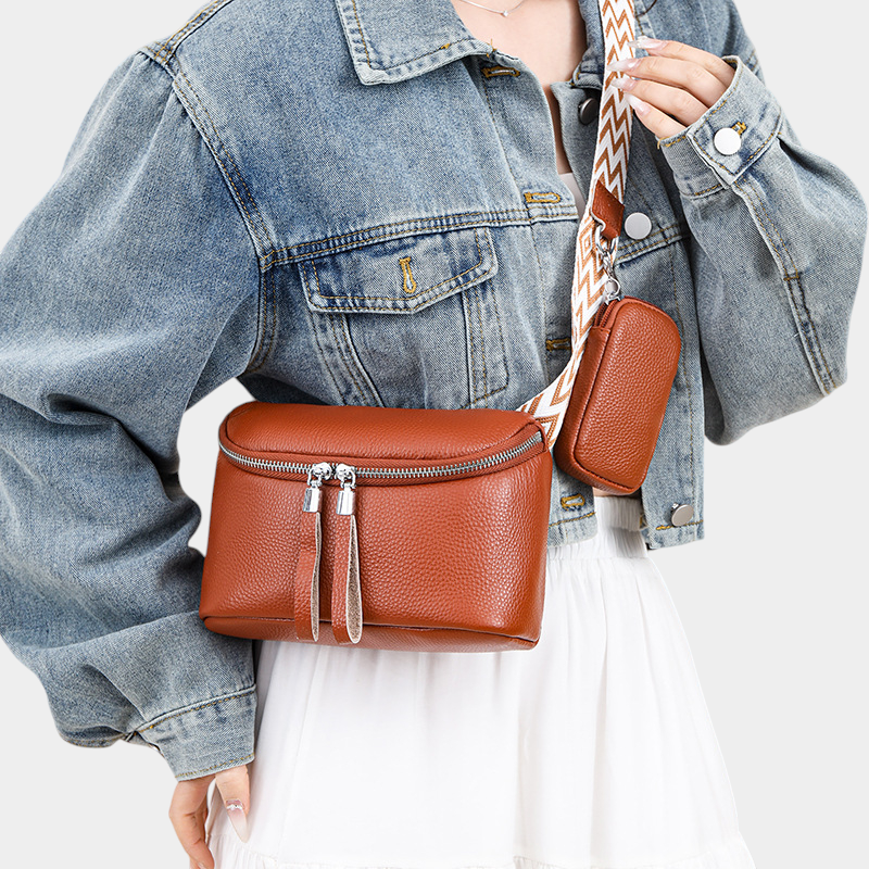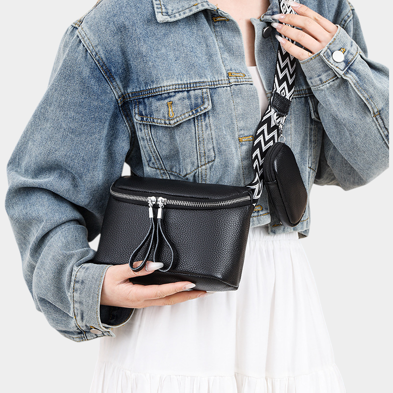 Avec sa lanière en nylon lisse à motif et ajustable, le Sac Banane Femme Cuir Chic Rectangulaire s’adapte à votre morphologie pour un porté épaule ou croisé. Profitez d’un confort optimal, d’une stabilité agréable et d’une liberté de mouvement tout au long de la journée.