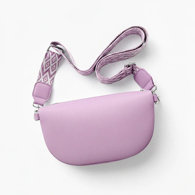 Avec sa teinte lilas pastel, ce sac banane incarne un style romantique et délicat, idéal pour celles qui aiment jouer avec les couleurs douces et les tendances actuelles. La bandoulière graphique apporte une touche d’originalité à vos tenues, tout en gardant une allure raffinée et moderne.