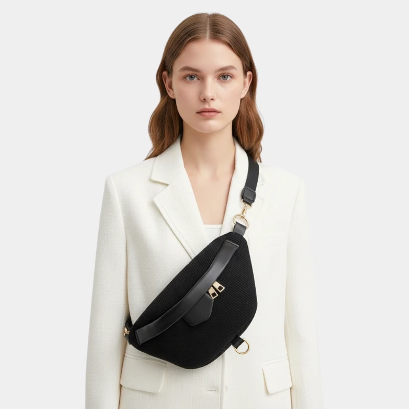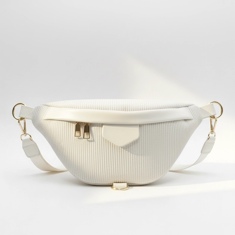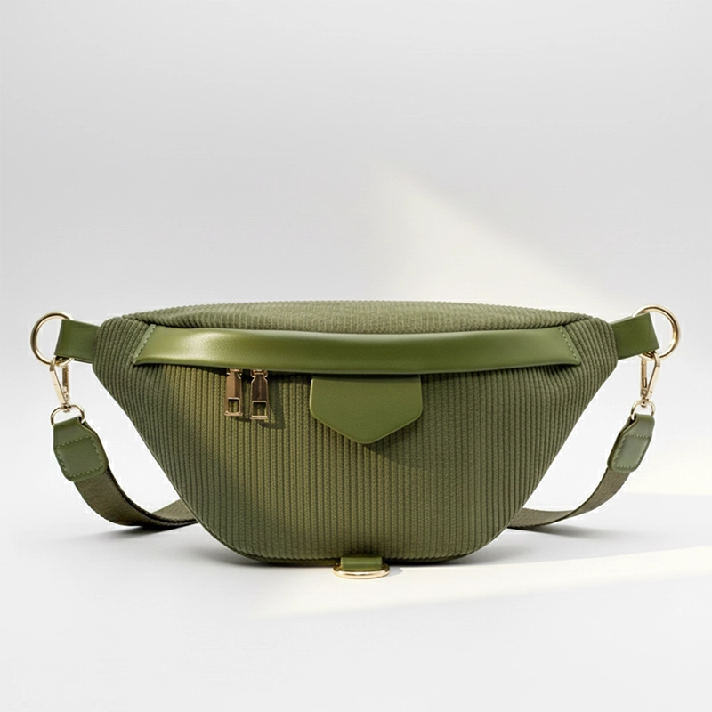 Le velours côtelé confère au Sac Banane Femme Velours une texture douce et chic, parfaite pour rehausser vos tenues. Les détails en similicuir et les accents dorés apportent une touche de raffinement, donnant à cet accessoire une allure élégante qui sublime les tenues avec une note chic.