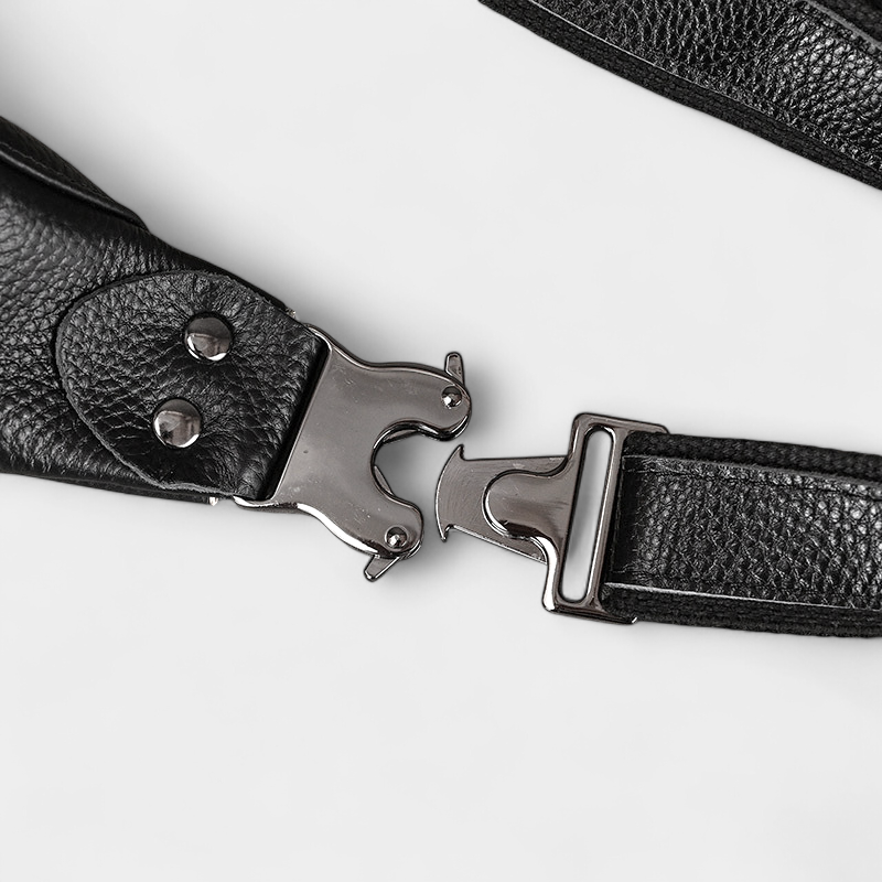 La lanière, fabriquée à partir d’un cuir renforcé de nylon, allie résistance et souplesse, offrant un porté confortable et ajustable que vous le portiez à la taille ou sur l’épaule. Sa conception étudiée assure stabilité et maintien, tout en permettant une répartition agréable du poids, idéale pour un usage au quotidien.