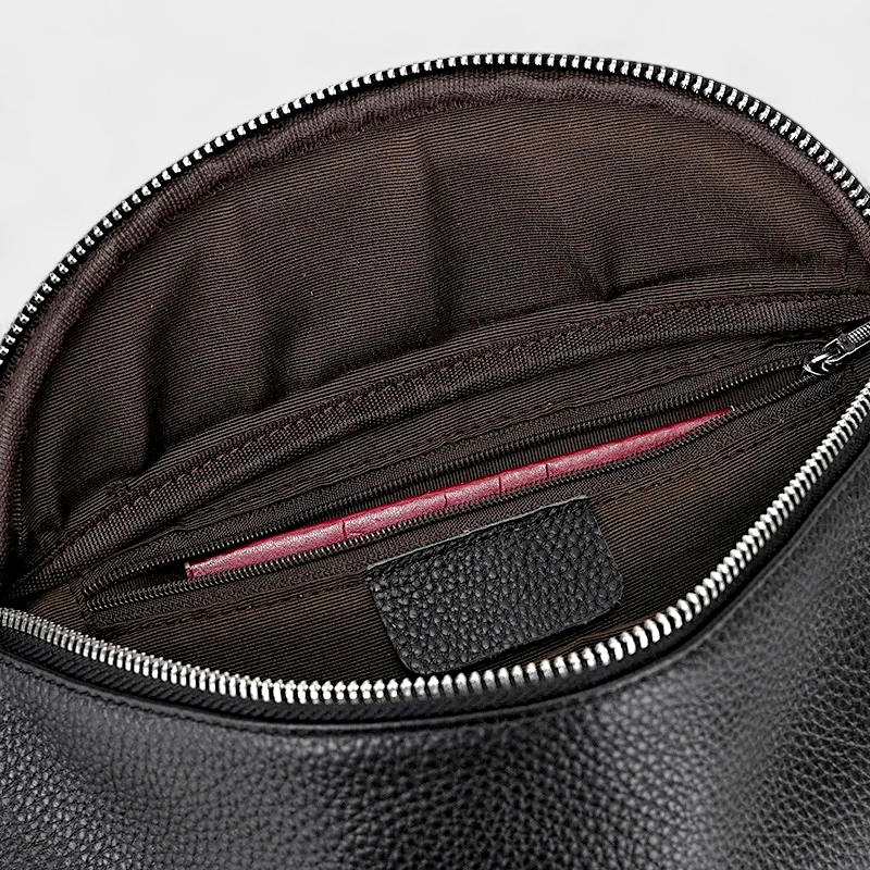 - Grande taille : poche avant avec fermeture zippée et deux compartiments internes, plus poche arrière sécurisée