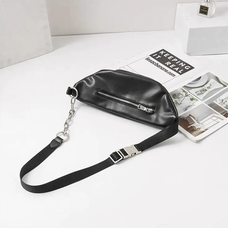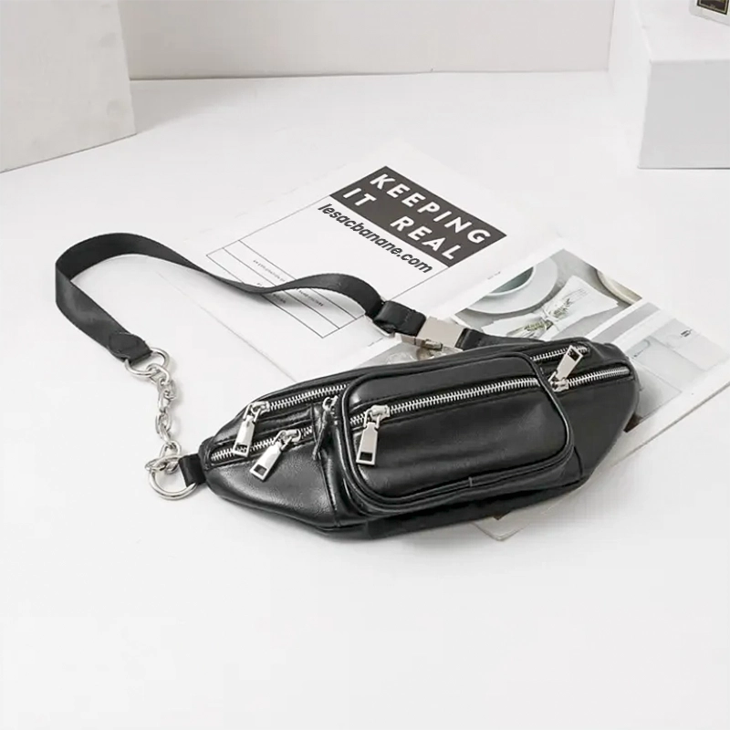 Vous êtes à la recherche d’un accessoire tendance et pratique pour compléter votre look rocker chic ? Ne cherchez plus, le Sac Banane Rock est fait pour vous ! Inspiré des blousons perfecto, ce sac banane en simili cuir type vachette apportera une touche rebelle à votre tenue. Avec sa lanière en simili cuir ajustable ornée d’une chaîne chromée et ses fermetures éclair imposantes, ce sac banane est à la fois sobre et résolument rock.