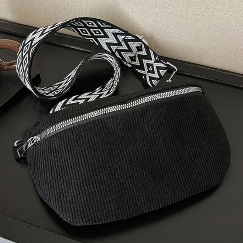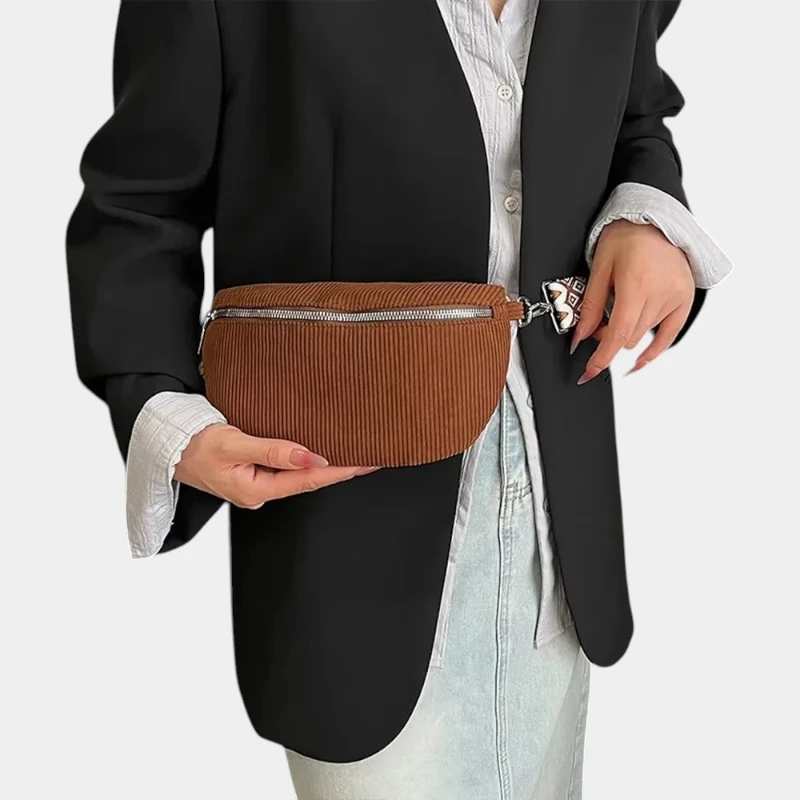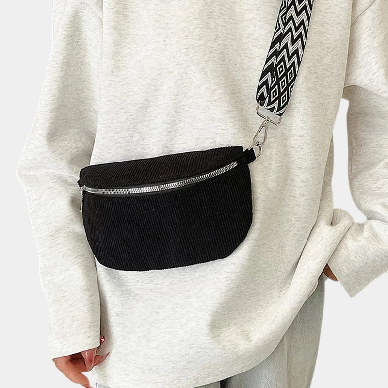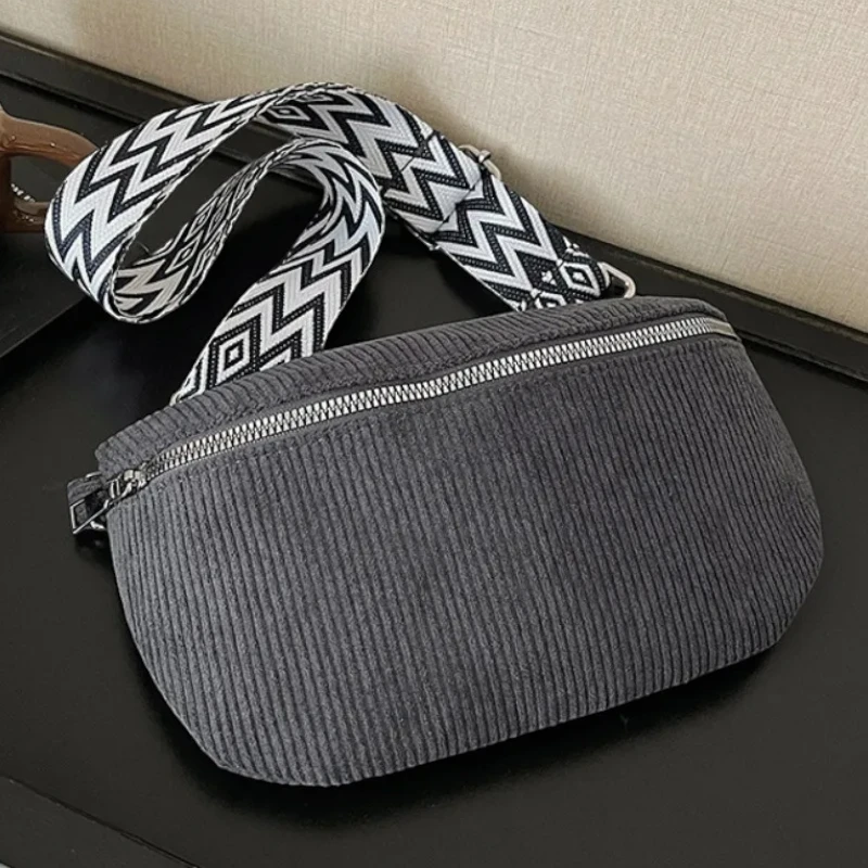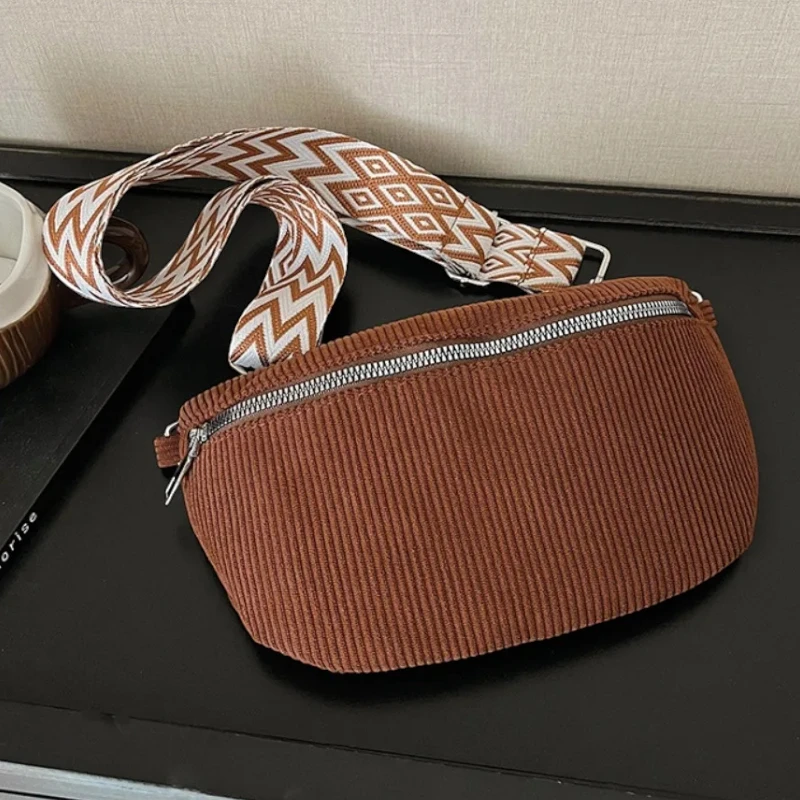 Sac Banane Velours Côtelé Bandoulière Femme Chic