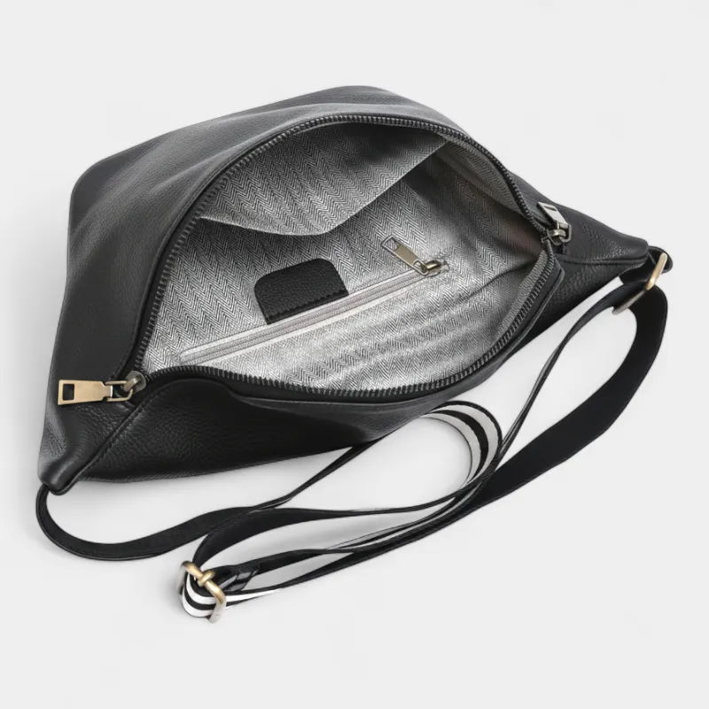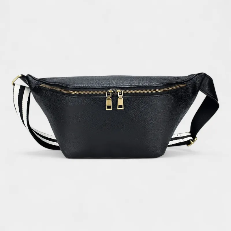 Le confort d’utilisation est au cœur de sa conception : le cuir grainé premium et la lanière rayée offrent un toucher agréable et un maintien parfait. Adoptez un sac banane qui conjugue raffinement et praticité au quotidien.